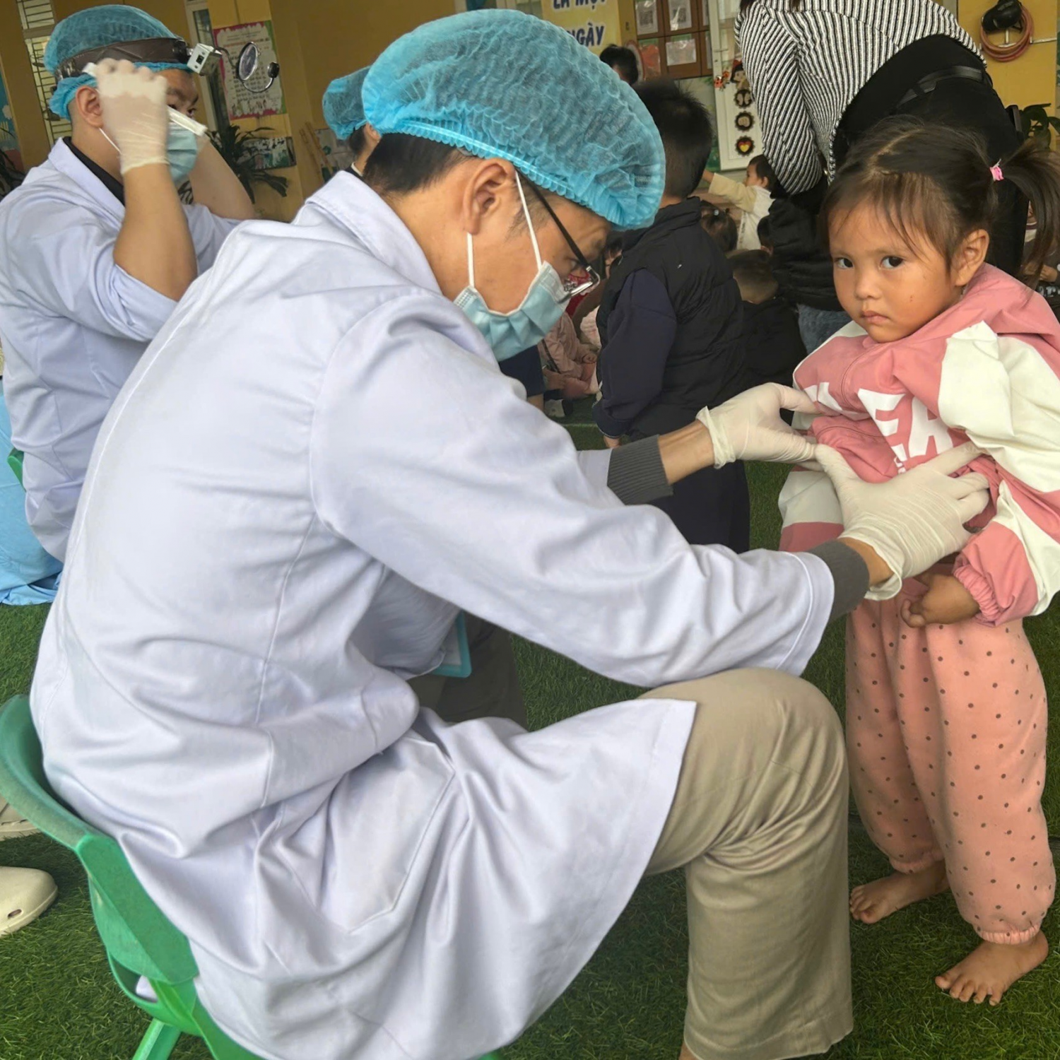 Hoạt động khám được triển khai linh hoạt tại các điểm trường mầm non và trạm y tế xã, tạo điều kiện thuận lợi để trẻ em trên địa bàn, đặc biệt là trẻ em có hoàn cảnh khó khăn, được tiếp cận dịch vụ y tế chuyên khoa một cách kịp thời, hiệu quả. Đội ngũ y, bác sĩ chuyên khoa của các bệnh viện Hoàn Mỹ trực tiếp khám, tư vấn, phân loại bệnh và chỉ định can thiệp điều trị theo đúng quy định chuyên môn.