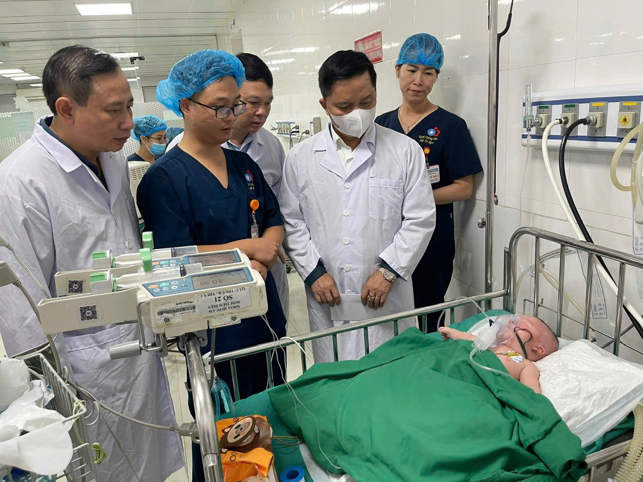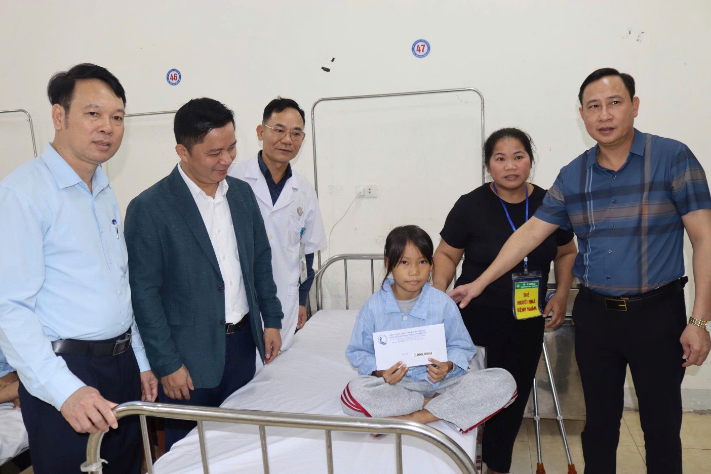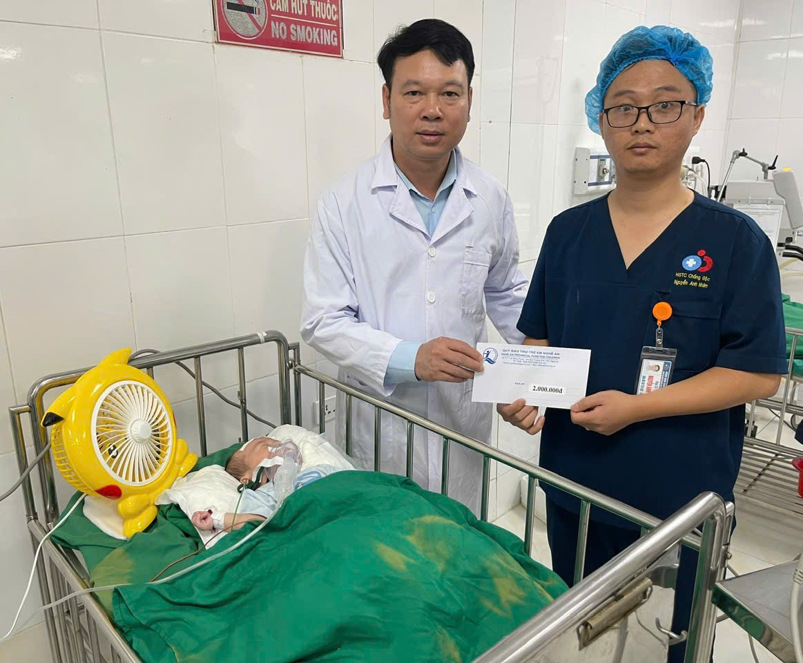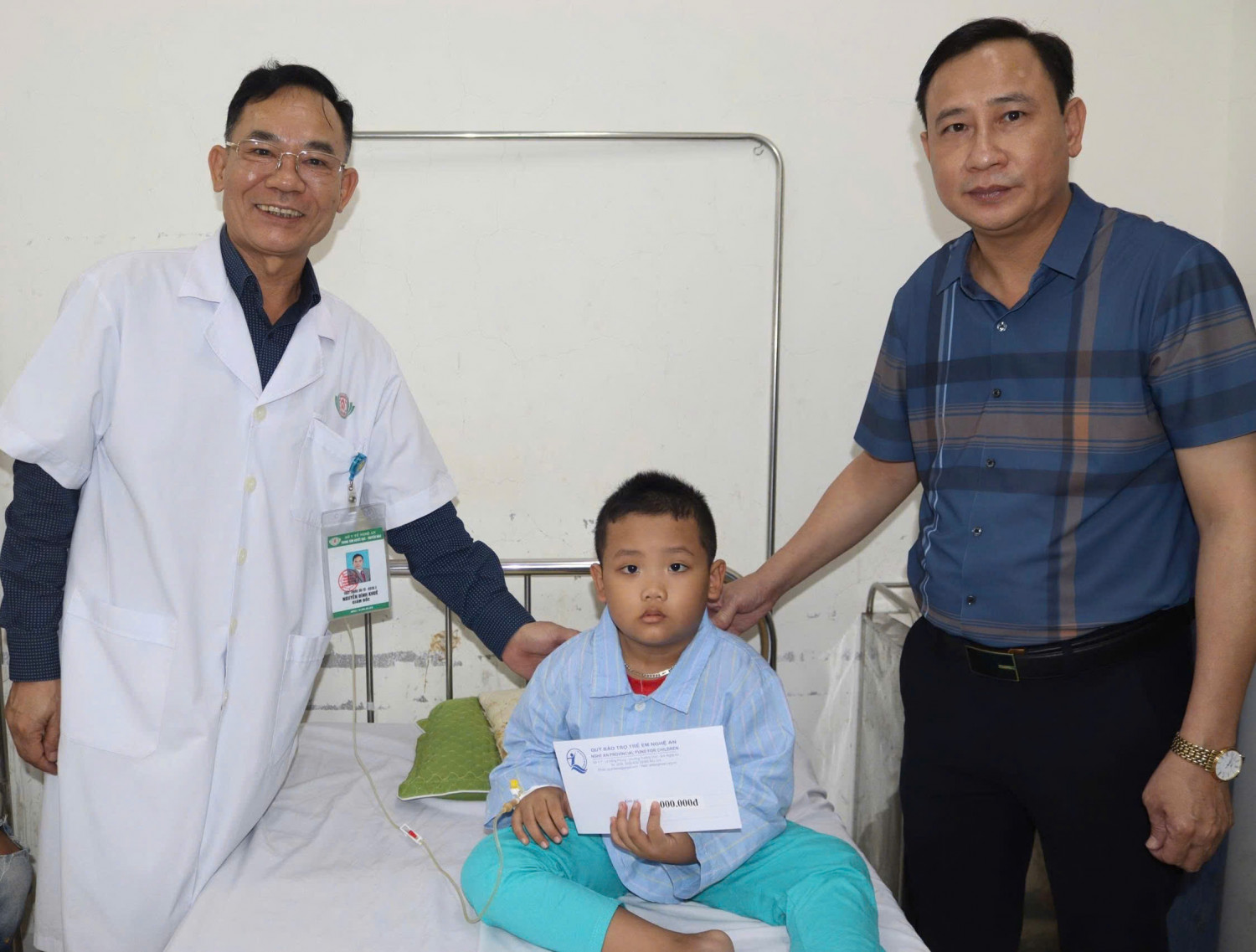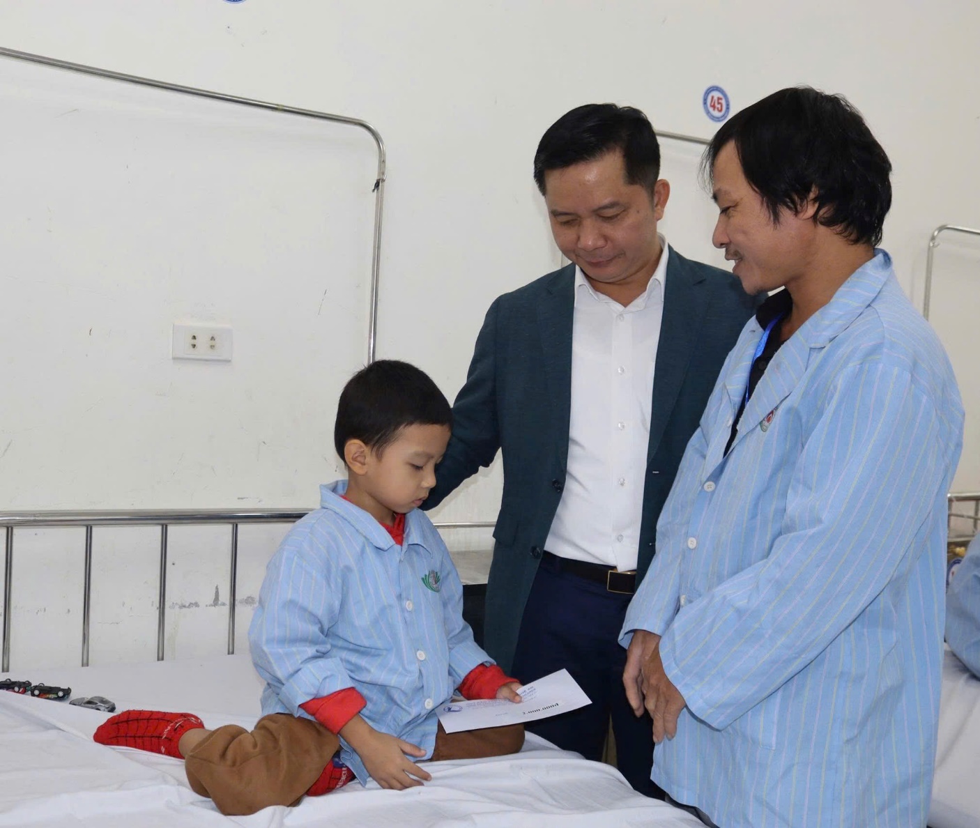 Thạc sĩ Nguyễn Văn Nam - Phó Giám đốc Sở Y tế và đoàn thăm, tặng quà cho trẻ đang điều trị tại Bệnh viện U bướu Nghệ An.