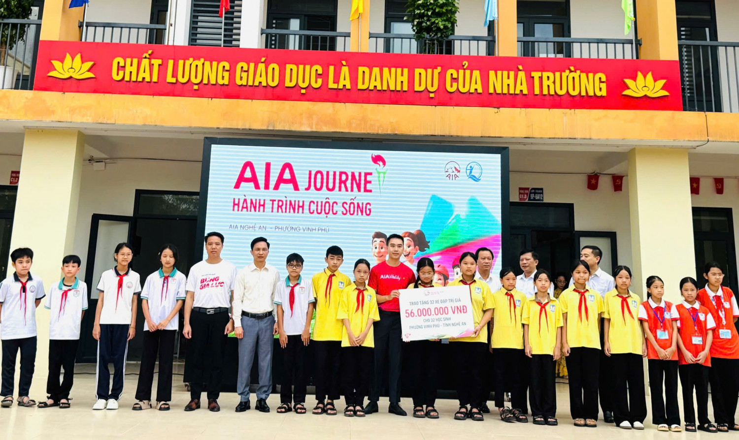 Sáng ngày 13/10/2025, tại Trường THCS Hà Huy Tập, Quỹ Bảo trợ trẻ em tỉnh Nghệ An phối hợp cùng Văn phòng Tổng Đại lý AIA Nghệ An và UBND phường Vinh Phú tổ chức chương trình trao tặng 32 chiếc xe đạp với tổng trị giá 56 triệu đồng cho 32 em học sinh có hoàn cảnh khó khăn thuộc 4 trường THCS trên địa bàn phường.