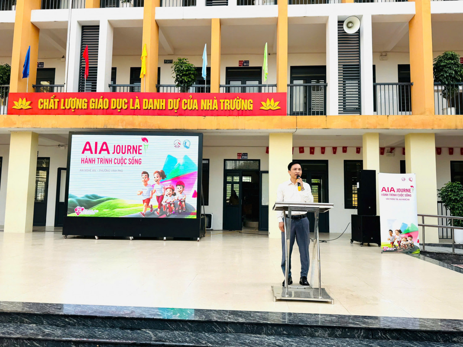 Phát biểu tại chương trình, ông Phan Sỹ Hiền – Phó Giám đốc Quỹ Bảo trợ trẻ em tỉnh Nghệ An chia sẻ: “Chương trình Hành trình cuộc sống do Quỹ Bảo trợ trẻ em Việt Nam, Quỹ Bảo trợ trẻ em tỉnh Nghệ An phối hợp cùng Công ty TNHH Bảo hiểm Nhân thọ AIA Việt Nam triển khai đã bước sang năm thứ 12 tại Nghệ An. Mục đích của chương trình là trao tặng xe đạp cho các em học sinh có hoàn cảnh khó khăn, tạo điều kiện, động lực để các em vươn lên trong học tập và cuộc sống. Thay mặt lãnh đạo Quỹ, tôi xin trân trọng cảm ơn Văn phòng Tổng Đại lý AIA Nghệ An đã luôn đồng hành, sẻ chia và có những đóng góp thiết thực cho công tác bảo vệ, chăm sóc và giáo dục trẻ em có hoàn cảnh đặc biệt trên địa bàn tỉnh. Sự chung tay của quý đơn vị đã và đang thắp lên niềm tin, hy vọng cho nhiều trẻ em xứ Nghệ. Chúng tôi mong rằng chương trình sẽ tiếp tục nhận được sự quan tâm, đồng hành của quý vị trong thời gian tới.”